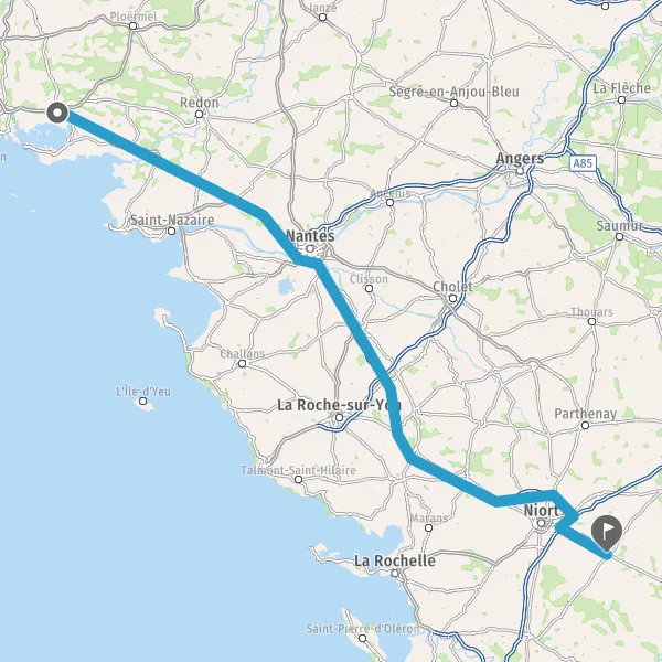 Prendre à droite et rejoindre A83. Continuer sur 150 kilomètres
