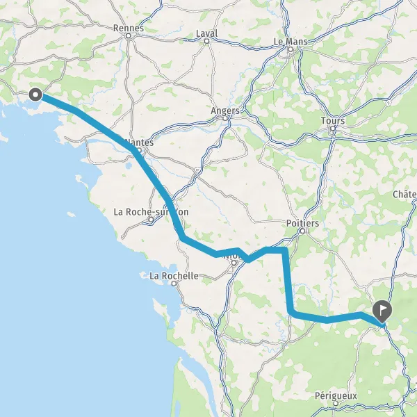 Prendre à droite et rejoindre A83. Continuer sur 150 kilomètres