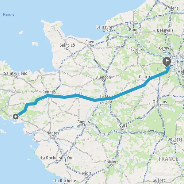 Prendre à gauche et rejoindre A11. Continuer sur 150 kilomètres