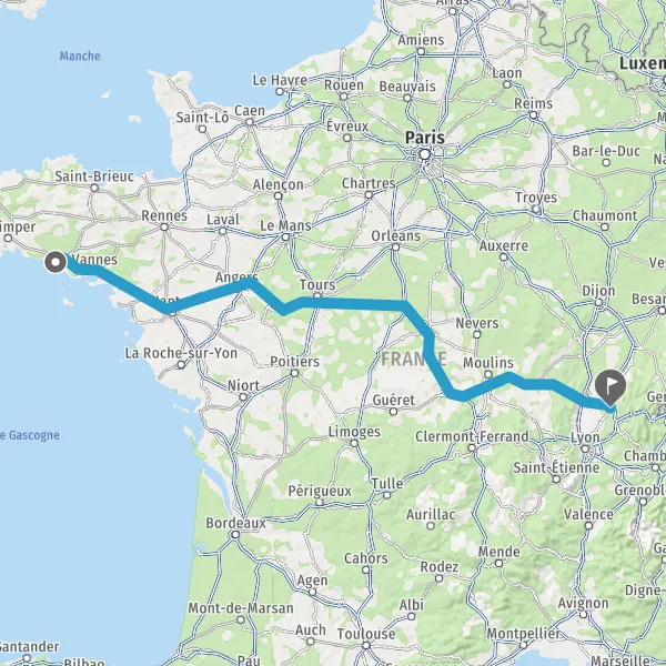 Prendre à droite et rejoindre A85. Continuer sur 205 kilomètres