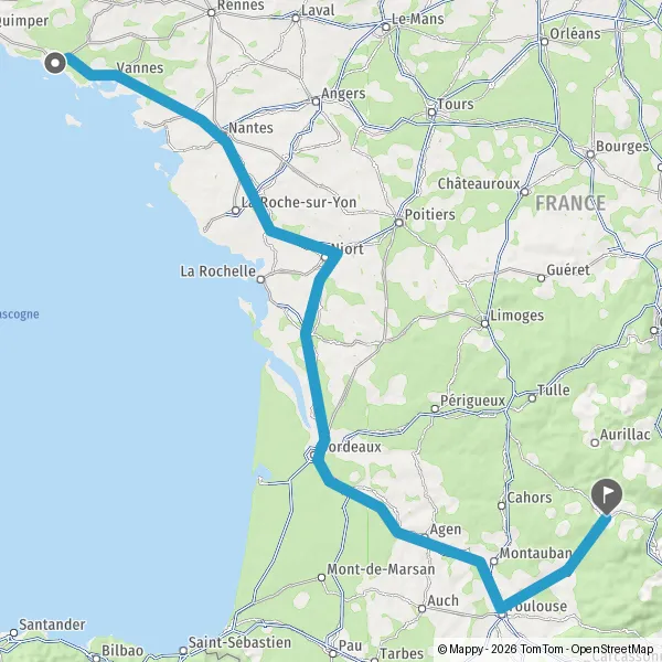Prendre à droite et rejoindre A83. Continuer sur 150 kilomètres