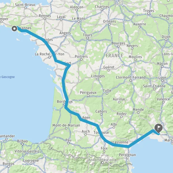 Prendre à droite et rejoindre A83. Continuer sur 150 kilomètres