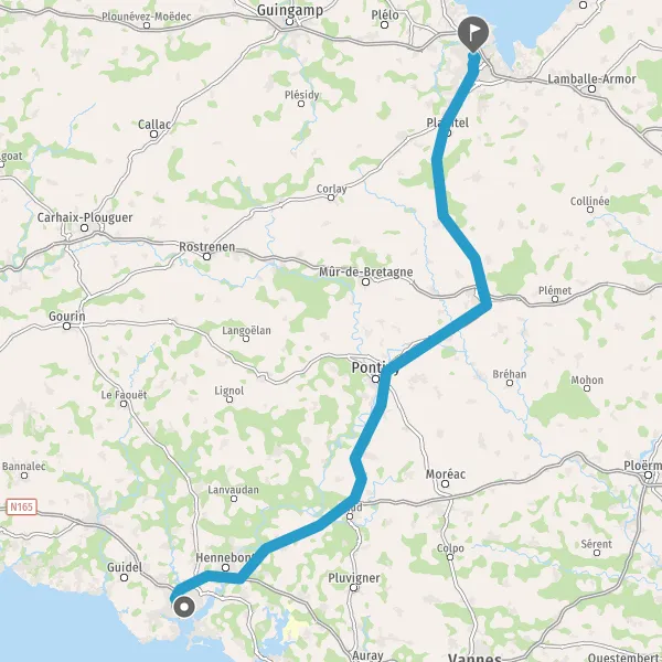 Au rond-point, prendre la 2ème sortie sur D768 (Route de Pontivy) et continuer sur 43 kilomètres