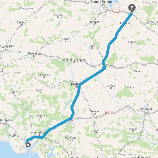 Au rond-point, prendre la 2ème sortie sur D768 (Route de Pontivy) et continuer sur 43 kilomètres
