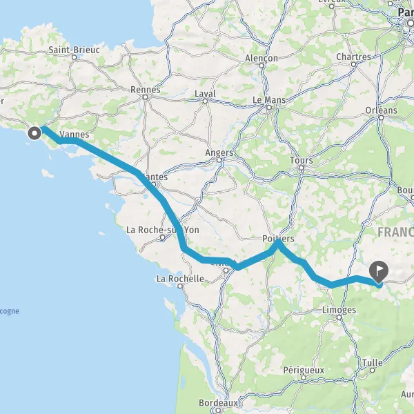 Prendre à droite et rejoindre A83. Continuer sur 150 kilomètres