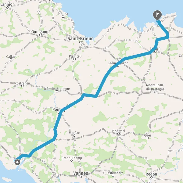 Au rond-point, prendre la 2ème sortie sur D768 (Route de Pontivy) et continuer sur 43 kilomètres