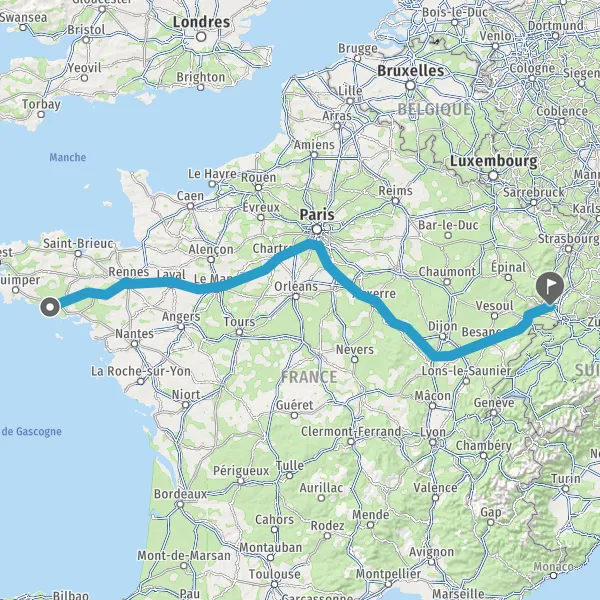 Prendre à droite et rejoindre A36. Continuer sur 221 kilomètres