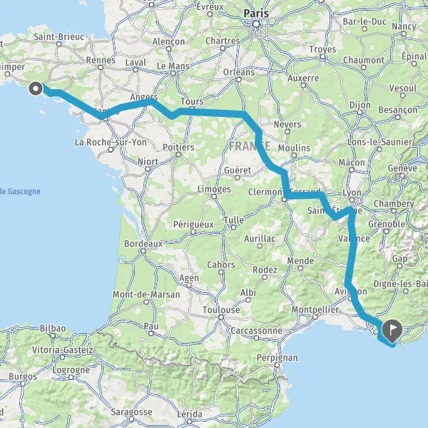 Prendre à droite et rejoindre A85. Continuer sur 205 kilomètres