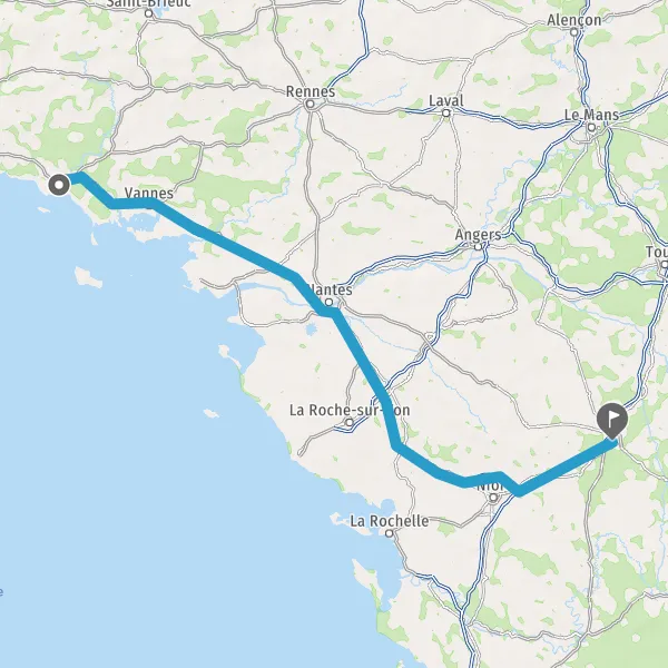 Prendre à droite et rejoindre A83. Continuer sur 150 kilomètres
