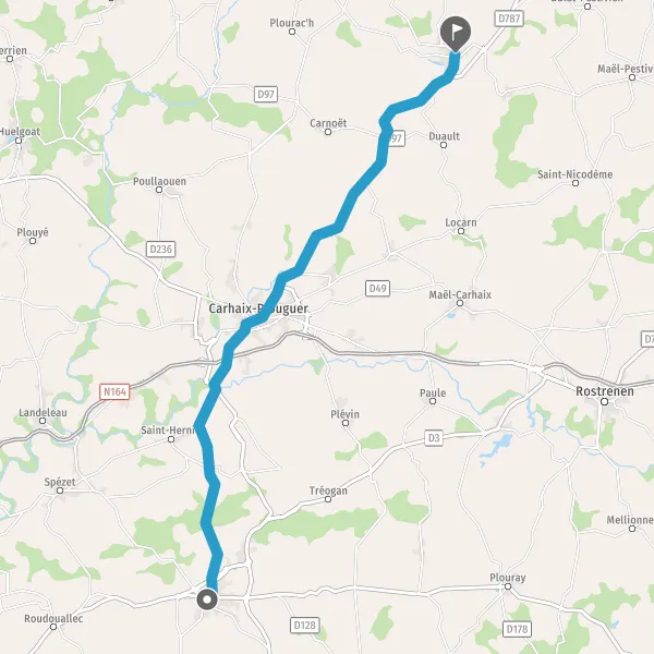 Tourner légèrement à gauche sur Rue de Callac et continuer sur 1 kilomètre