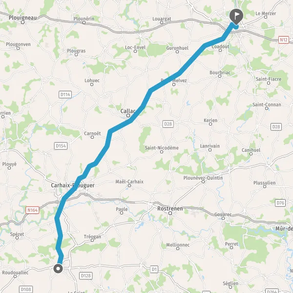 Tourner légèrement à gauche sur Rue de Callac et continuer sur 1 kilomètre