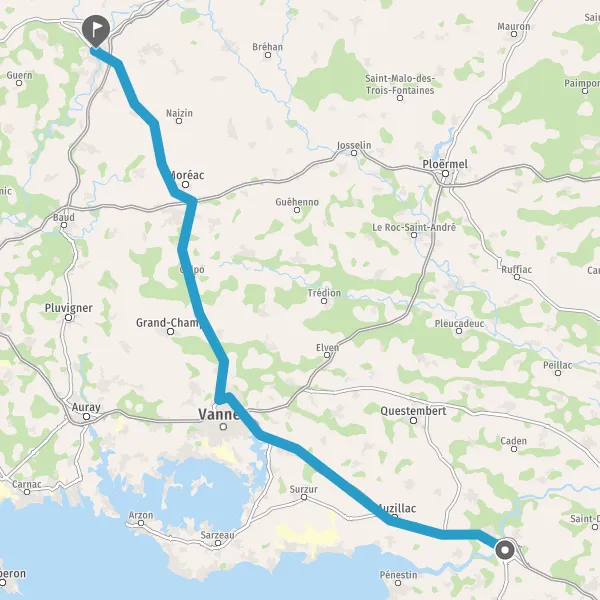 Prendre à gauche et rejoindre N165 E60 (N165). Continuer sur 35 kilomètres