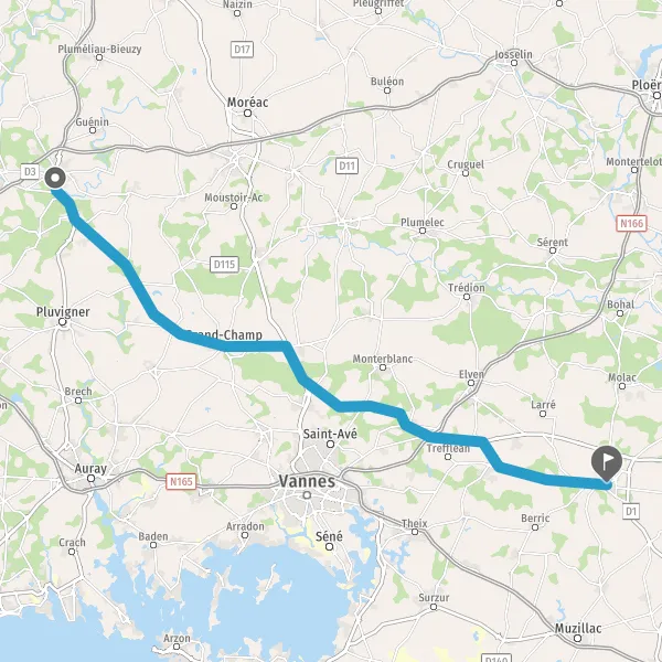 Tourner à droite sur D1c (Route d'Elven) et continuer sur 1 kilomètre