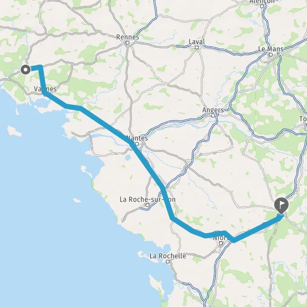 Prendre à droite et rejoindre A83. Continuer sur 150 kilomètres