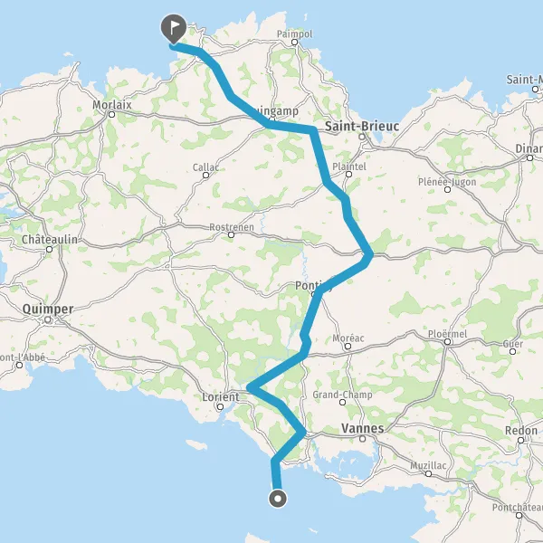Au rond-point, prendre la 2ème sortie sur D768 (Route de Pontivy) et continuer sur 43 kilomètres