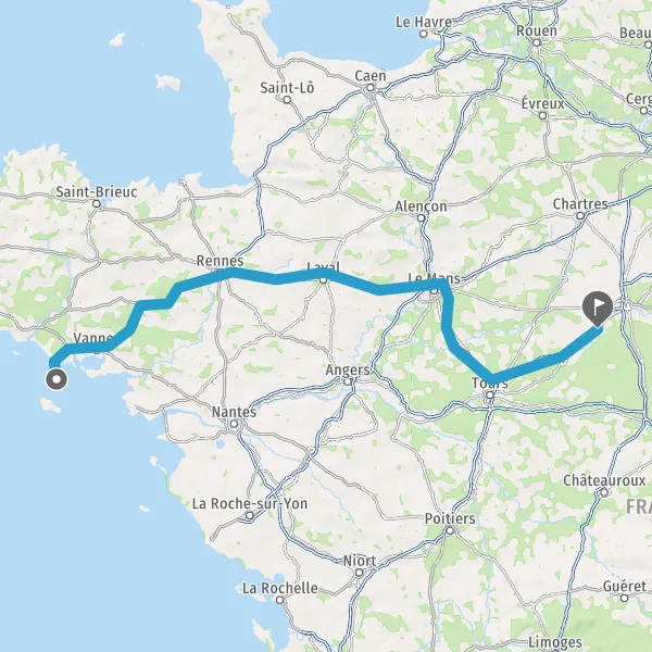 Prendre à droite et rejoindre N165 E60 (N165). Continuer sur 123 kilomètres