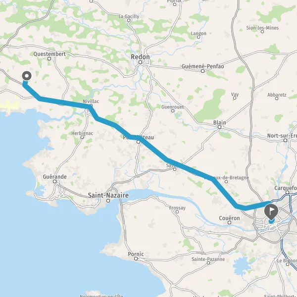 Prendre à gauche et rejoindre N165 E60 (N165). Continuer sur 79 kilomètres