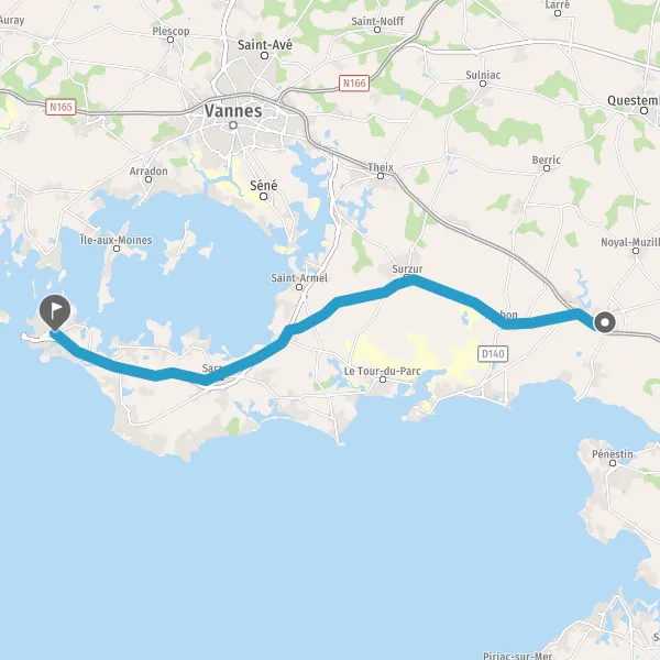 Au rond-point, prendre la 2ème sortie sur D20 (Route de Sarzeau) et continuer sur 1,9 kilomètre