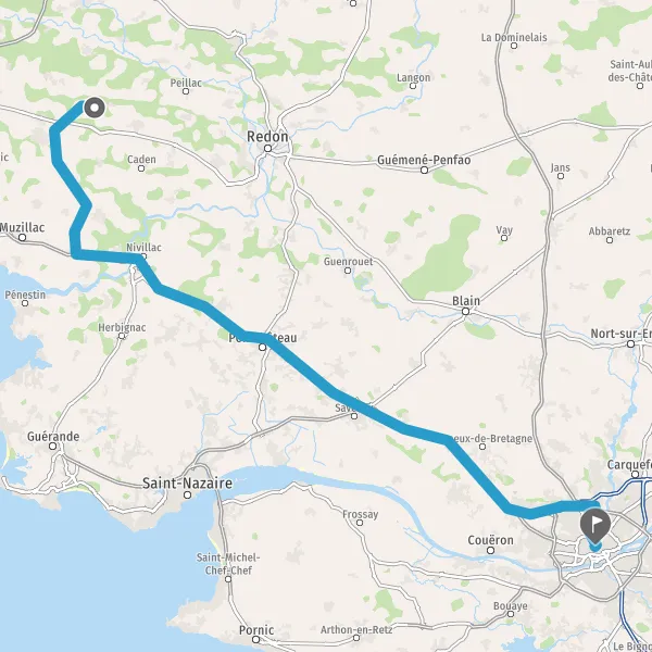 Prendre à droite et rejoindre N165 E60 (N165). Continuer sur 71 kilomètres