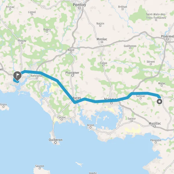 Prendre à droite et rejoindre N165 E60 (N165). Continuer sur 55 kilomètres