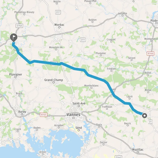 Au rond-point, prendre la 1ère sortie sur D768 (Rue d'Auray) et continuer sur 130 mètres