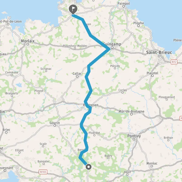 Tourner à droite sur D31 (Route de Callac) et continuer sur 15 kilomètres