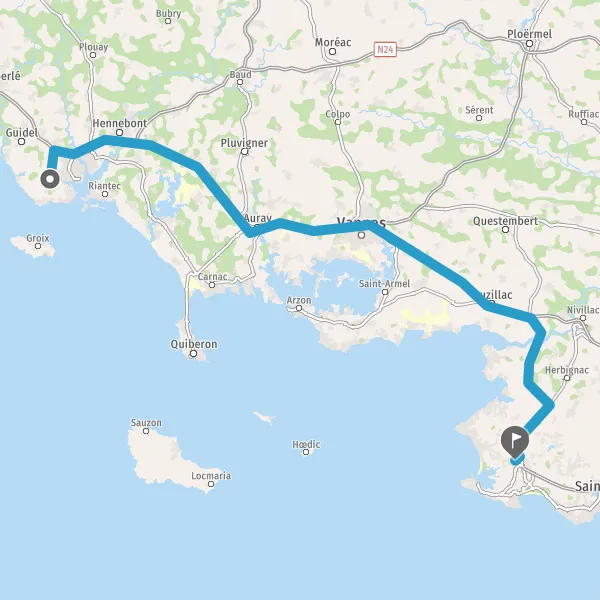 Prendre à droite et rejoindre N165 E60 (N165). Continuer sur 101 kilomètres