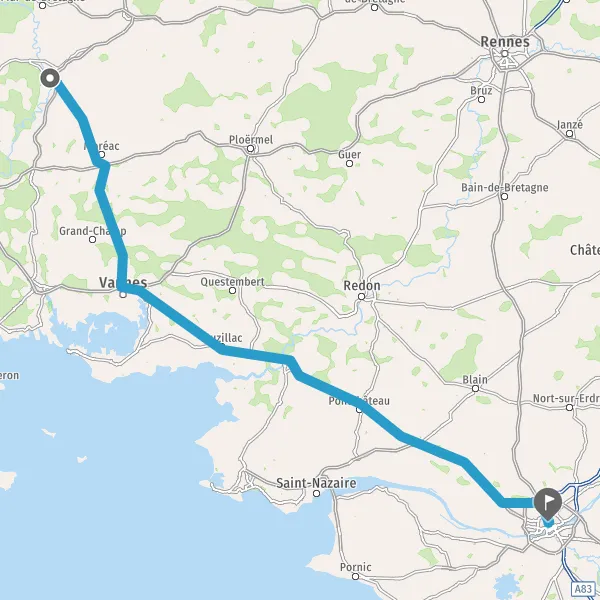 Au rond-point, prendre la 2ème sortie sur Route de Rennes et continuer sur 180 mètres