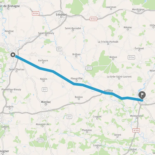Au rond-point, prendre la 2ème sortie sur D764 (Sainte-Brigitte) et continuer sur 5 kilomètres
