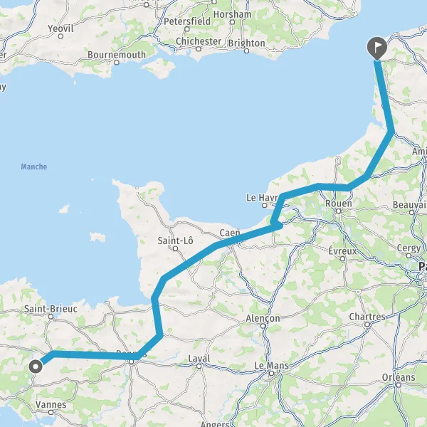Prendre à droite et rejoindre A84 E3. Continuer sur 166 kilomètres