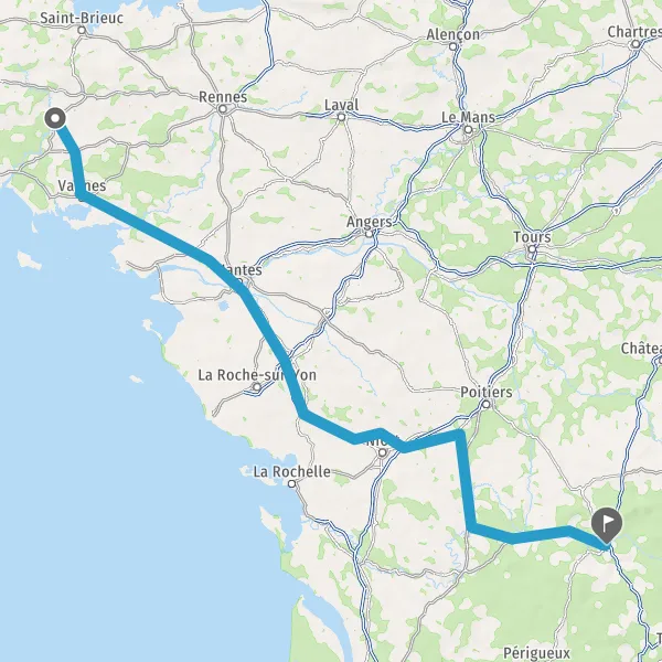 Prendre à droite et rejoindre A83. Continuer sur 150 kilomètres