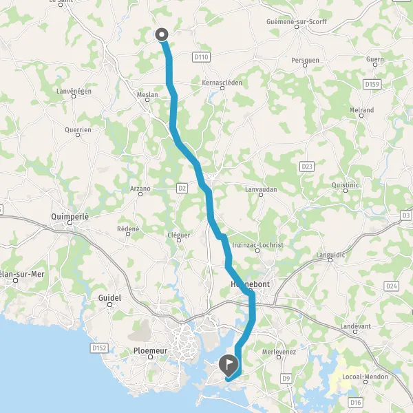 Tourner légèrement à droite sur D33 (Route de Merlevenez) et continuer sur 650 mètres