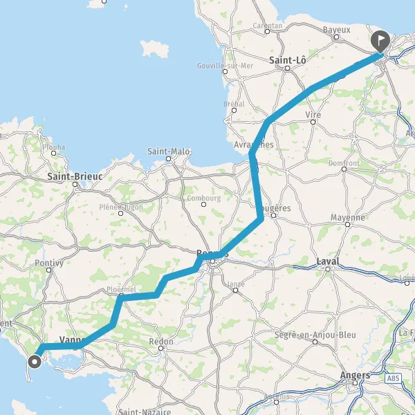 Prendre à droite et rejoindre A84 E3. Continuer sur 166 kilomètres