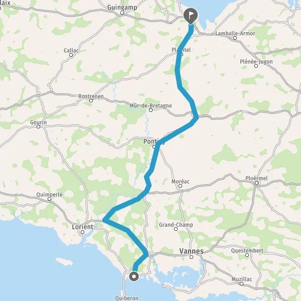 Au rond-point, prendre la 2ème sortie sur D768 (Route de Pontivy) et continuer sur 43 kilomètres