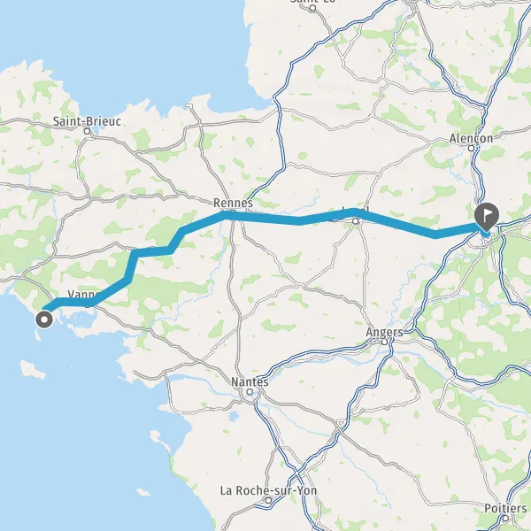 Prendre à droite et rejoindre N165 E60 (N165). Continuer sur 22 kilomètres