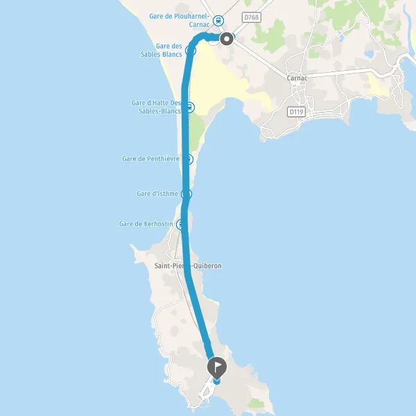 Tourner légèrement à droite sur D768 (Route de Quiberon) et continuer sur 2,1 kilomètres