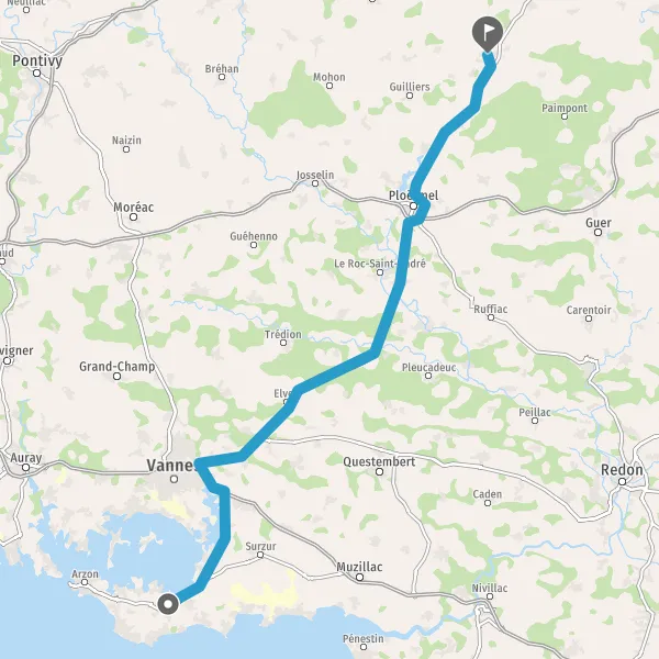 Prendre à droite et rejoindre N165 E60 (Voie Express Lorient-Nantes). Continuer sur 5 kilomètres