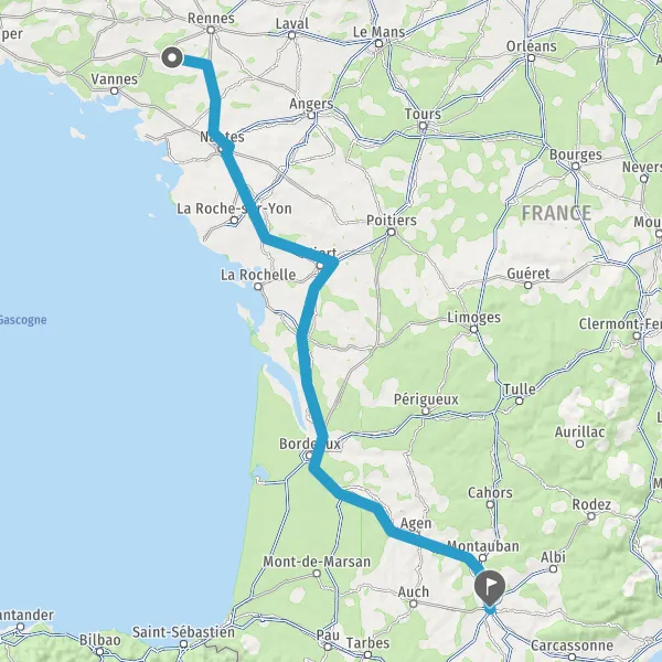 Prendre à droite et rejoindre A83. Continuer sur 150 kilomètres