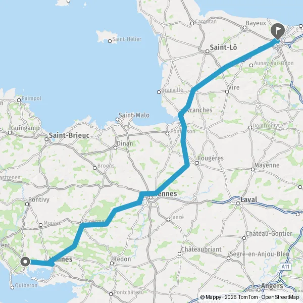Prendre à droite et rejoindre A84 E3. Continuer sur 166 kilomètres