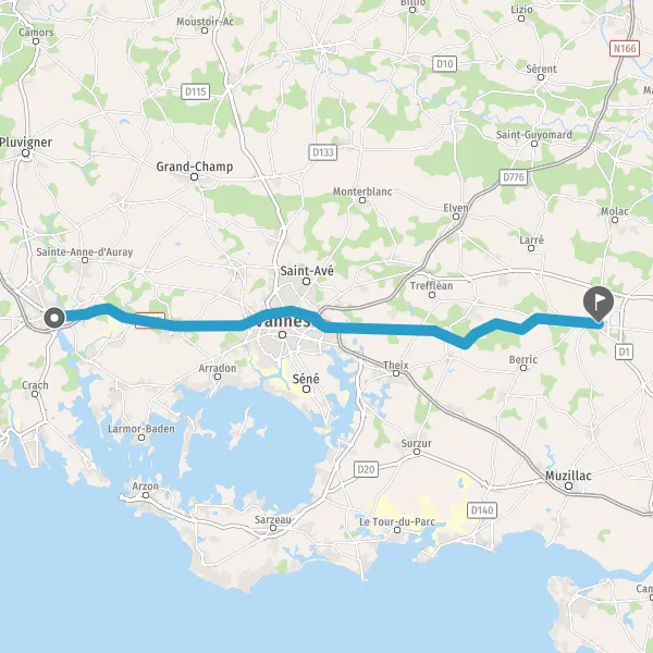 Tourner à droite sur D1c (Route d'Elven) et continuer sur 1 kilomètre