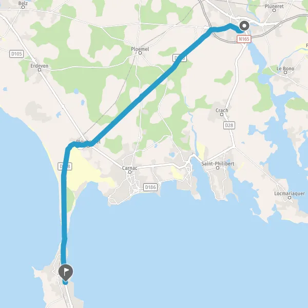 Tourner légèrement à droite sur D768 (Route de Quiberon) et continuer sur 2,1 kilomètres