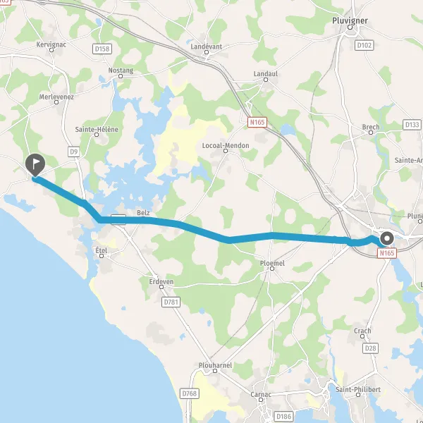 Tourner légèrement à droite sur D22 (Route de Belz) et continuer sur 1,2 kilomètre