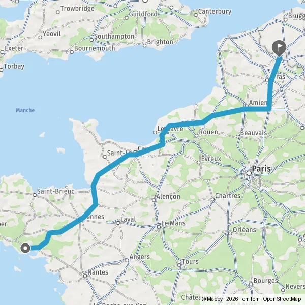 Prendre à droite et rejoindre A84 E3. Continuer sur 166 kilomètres