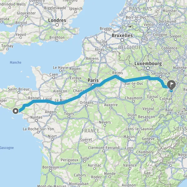 Continuer N24 (Rue de Lorient) sur 1,5 kilomètre