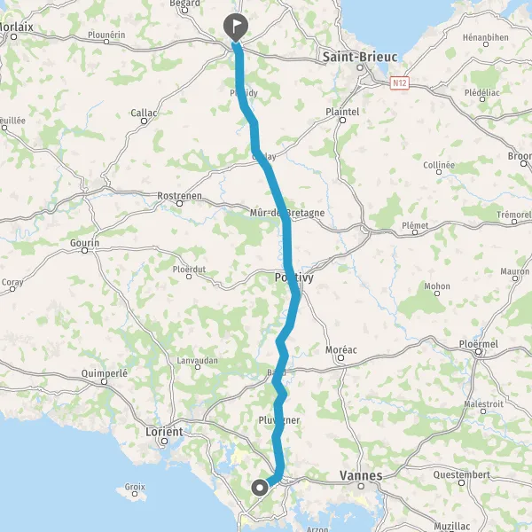 Tourner à droite sur D105 (Rue Joseph le Pévédic) et continuer sur 2,9 kilomètres