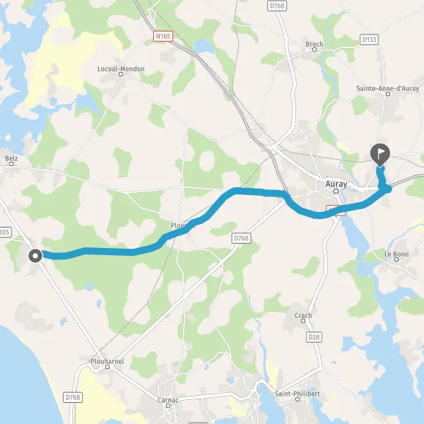 Au rond-point, prendre la 3ème sortie sur D22 (Route de Belz) et continuer sur 450 mètres