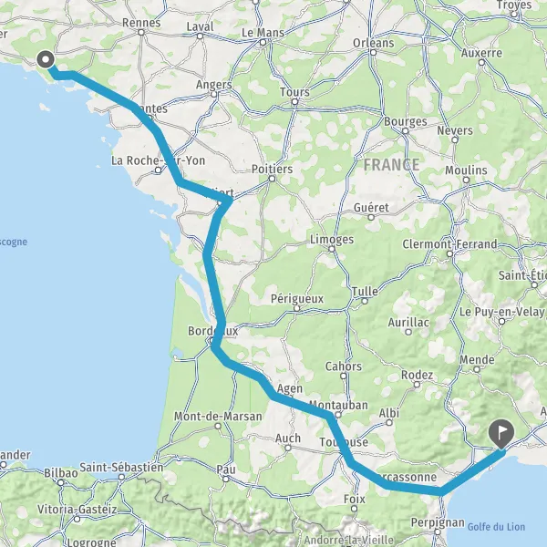 Prendre à droite et rejoindre A83. Continuer sur 150 kilomètres