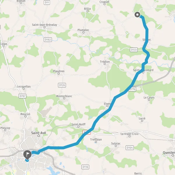 Prendre à droite et rejoindre N165 E60 (N165). Continuer sur 3,6 kilomètres