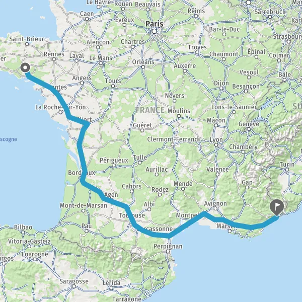 Prendre à droite et rejoindre A83. Continuer sur 150 kilomètres