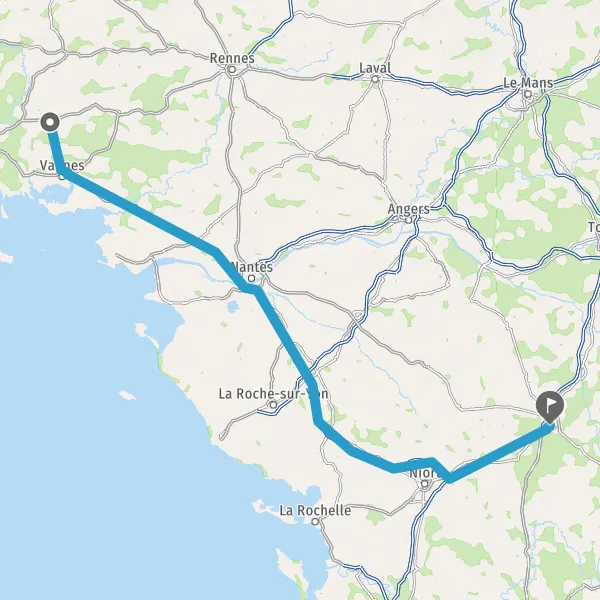 Prendre à droite et rejoindre A83. Continuer sur 150 kilomètres